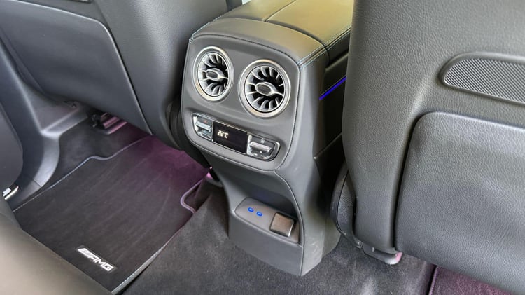 À l’arrière, les sièges chauffants et inclinables (manuellement, tout de même) offrent un bon confort, malgré un espace aux jambes moyen. En revanche, la garde au toit est impériale, et la finition irréprochable. Les espaces de rangement sont assez nombreux et bien pensés, avec revêtements antidérapants, prises USB-C à l’avant et à l’arrière, et chargeur à induction.