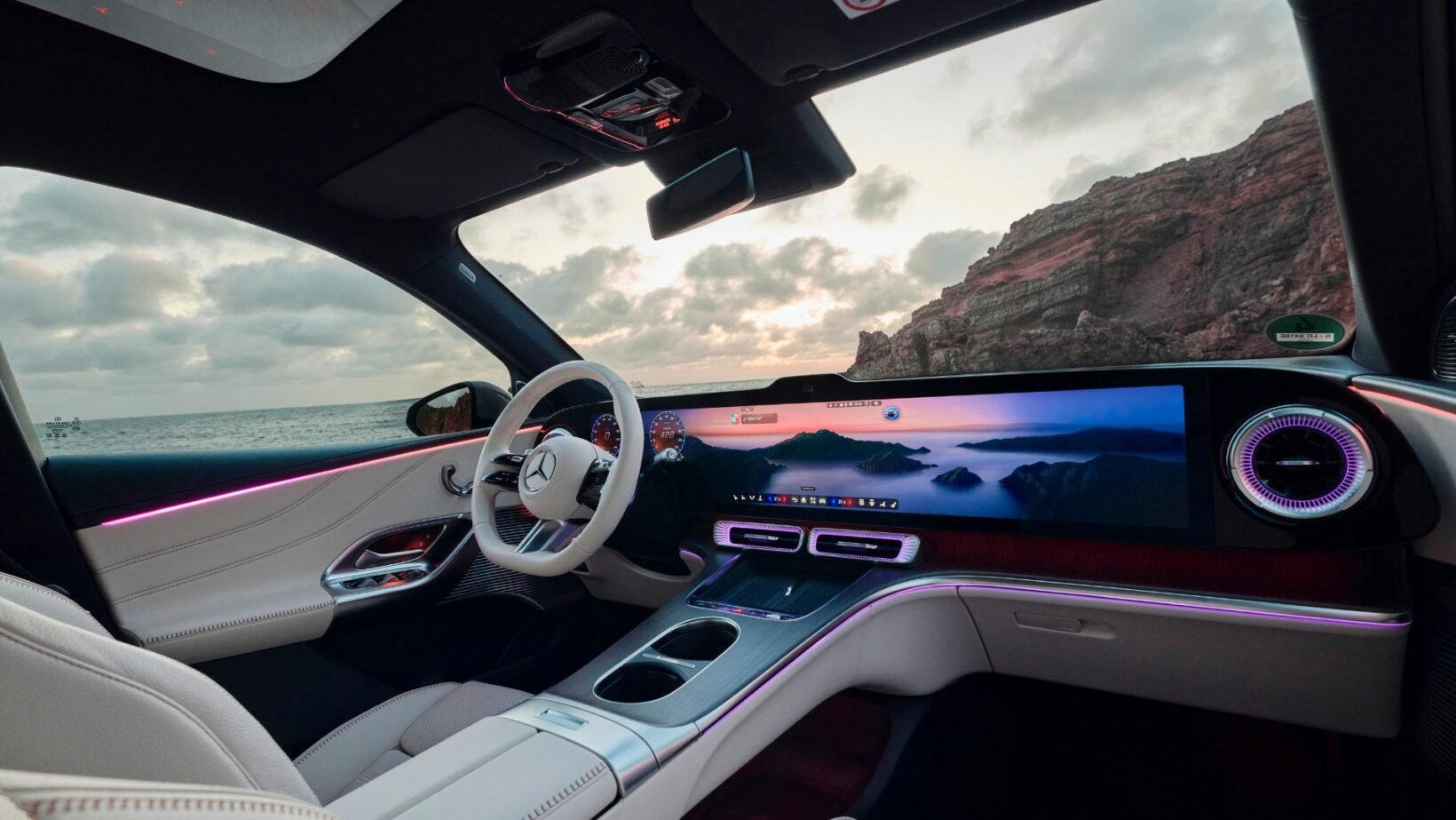 On règle la climatisation sur l’écran central, mais la caméra de parking ou l’assistant vocal ont leurs boutons physiques. La dalle est de technologie LED mais pas OLED. Les temps de réaction sont très bons, avec moins de 10 secondes de méditation pour planifier un itinéraire de 2 000 km. Le tout est mû par le nouveau logiciel maison MB.OS, déléguant certaines tâches à des partenaires. Par exemple Google Maps pour le planificateur ou OpenAI et Bing pour l’assistant vocal « Hey Mercedes ».
