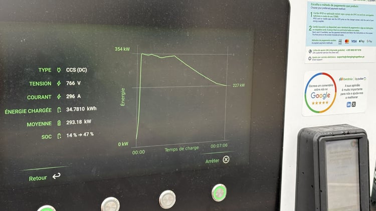 Branchons-nous sur une borne rapide dans le cadre romantique d’un parking de magasin de bricolage. Dans de bonnes conditions – batterie à température et mercure à 16°C – notre exemplaire d’essai a fait encore mieux qu’attendu.