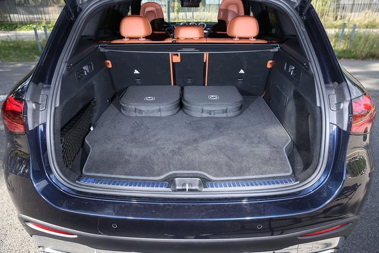 Heureusement, cette masse ne se sent pas vraiment volant en main si l’on ne chatouille pas les limites du GLC. Les roues arrière directrices l’aident à tourner facilement dans les rues, alors que la suspension Airmatic, plutôt spongieuse dans les modes de conduite normaux, confère un niveau de confort qui ne souffre d’aucune critique. On regrette toutefois les trous à l’accélération entre deux changements de pignons, notamment sensibles en mode Electric. Aussi, on déplore la perte de 150 l dans la soute (470 l au total) à cause de la batterie. Le sous-plancher n’est pas disponible et les câbles devront trainer dans le compartiment.