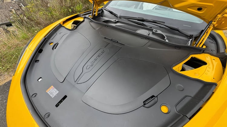 Avec 249 litres, le coffre du Cyberster n’a rien d’un déménageur, mais il reste plus logeable que celui d’une Porsche 718 Boxster. Surtout, il ne perd pas un litre quand la capote se replie. Ce qui, pour un cabriolet, tient presque du miracle. Vous pourrez donc prévoir quatre sacs pour partir sur un week-end prolongé. Un petit compartiment derrière les sièges complète la capacité d’emport même si cela n’excuse pas l’absence de « frunk » sous l’immense capot.
