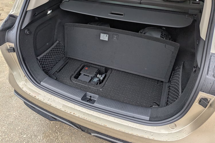 Cette banquette reculée n’est pas sans contrepartie sur le volume de coffre, donné pour 493 l sous tablette. Une valeur inférieure à la moyenne pour un véhicule de ce gabarit. De plus, on regrette l’absence de sous-plancher. Cependant, le MG S6 EV se rattrape un peu avec un grand coffre sous le capot d’un volume de 124 l avec la version Propulsion (un peu moins avec la déclinaison AWD). Toujours au rayon des consolations, le SUV propose en série un hayon électrique et mains libres.