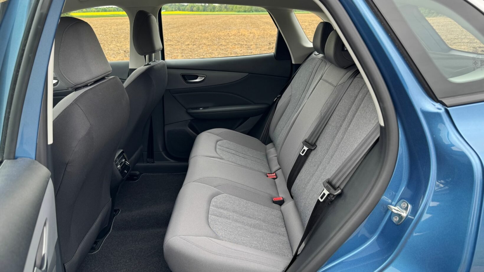 À l’arrière, l’espace ne manque pas. La banquette accueille trois adultes sans contrainte, malgré l’absence d’accoudoir central. Le plancher plat, les poignées de maintien et les rangements bien pensés participent au confort global, renforcé par une assise moelleuse et un bon espace aux jambes.