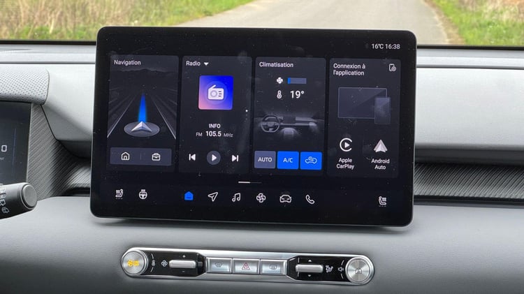 L’ergonomie des commandes est très bien pensée avec des boutons physiques et une molette permettant de gérer facilement la climatisation et la radio. Il est également possible de déconnecter rapidement les nouvelles alertes de sécurité obligatoires (comme l’alerte de survitesse, l’alerte attention conducteur et la correction de trajectoire) via un raccourci paramétrable sur mesure.