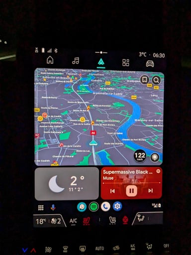 Mais c’est surtout le GPS, qui est en fait Google Maps, qui nous a plu à l’utilisation. Il se montre aussi complet qu’un logiciel comme Waze, tout en étant plus clair visuellement que ce dernier. On apprécie aussi qu’il paraisse plus moderne que les GPS intégrés dans une grande partie des véhicules. Sur une voiture hybride, il ne profite pas de l’excellent planificateur de recharge que comporte Android Auto, mais son utilisation reste tout de même satisfaisante.