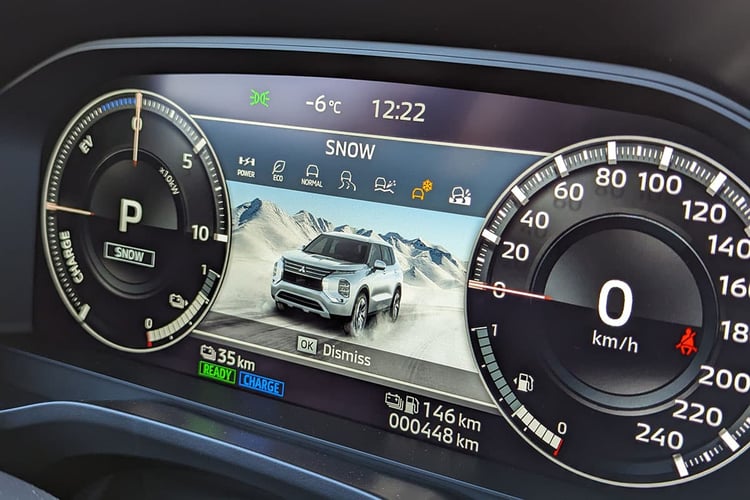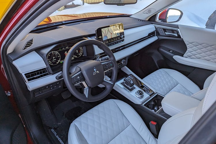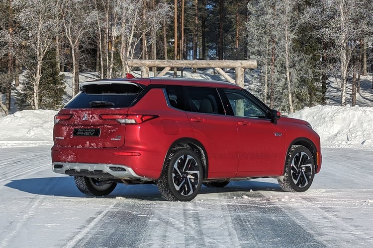 Il nous a été impossible de réaliser la moindre mesure pendant ce court essai. D’autant que les tours sur un circuit glace n’ont absolument rien de réalistes. En revanche, la consommation devrait se montrer assez proche de celle d’un Mitsubishi Eclipse Cross. C’est en tout cas la proximité que révèlent les données des cycles d’homologation JC08 et WLTC au Japon, où l’Outlander est crédité d’une moyenne de 6,2 l/100 km avec la moins favorable des normes (WLTC). En face, l’Eclipse Crosse affiche 6,1 l/100 km sur la même base. On peut donc estimer que l’Outlander PHEV gravitera autour des 8,0 l/100 km sur autoroute. En matière de consommation électrique, le SUV a été homologué à une moyenne de 23,9 kWh/100 km. On peut donc s’attendre à parcourir entre 75 et 80 km en mode 100 % électrique dans la vraie vie. Cependant, ce relevé donne une indication pour la suite : car pour atteindre la barre des 100 km d’autonomie, la version restylée devrait donc s’équiper d’une batterie d’au moins 25 kWh !