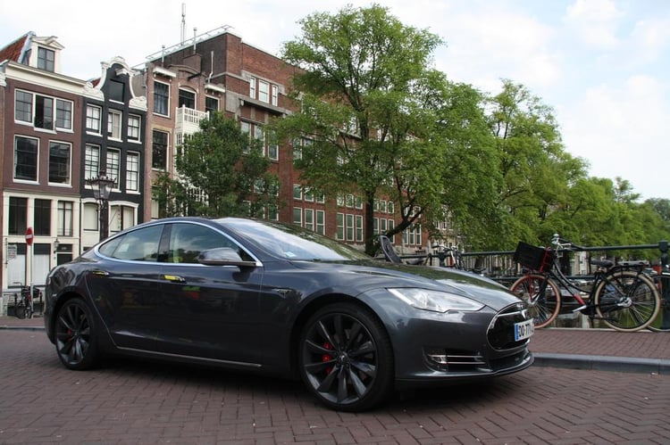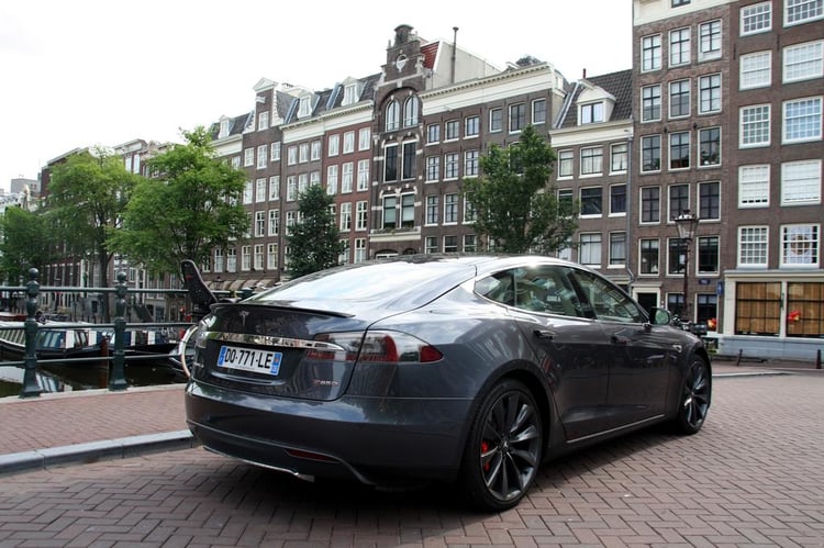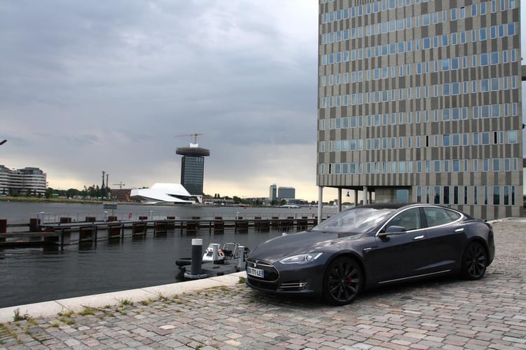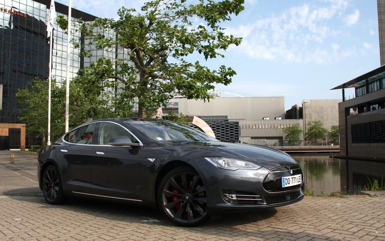 10h00 à Paris, il fait déjà très chaud lorsque nous arrivons aux quartiers généraux français de Tesla, à Gennevilliers. A notre arrivée, les véhicules nous attendent déjà pour partir direction Amsterdam, à plus de 500 kilomètres, où nous devons rejoindre le QG européen du constructeur. Si nous ne savions pas quels véhicules nous seraient confiés, un rapide coup d’œil à la carrosserie nous permet de constater qu’il s’agira de deux Model S P85D, la plus performante des Model S disponible à ce jour avec 4 roues motrices, 700 chevaux de puissance et 85 kWh de batterie embarquée. De quoi réaliser un bel essai durant les cinq heures de route qui nous séparent de la capitale néerlandaise.