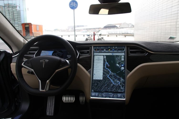 Connectée, la Model S peut également accéder à internet et utilise l’interface Google Maps pour son application GPS particulièrement précise. Surtout, elle peut être mise à jour à distance sans avoir à repasser en concession. « Une mise à jour est disponible, voulez-vous l’installer ? » c’est un peu comme un téléphone mobile dont les caractéristiques et les performances peuvent évoluer avec le temps. Grâce à de nouveaux algorythmes, le constructeur a ainsi pu raccourcir de 0.1 secondes le passage de 0 à 100 km/h ou passer la vitesse de pointe à 250 km/h. D’autres applications, comme le système de freinage d’urgence ont également pu être installées à distance, tirant profit des nombreux capteurs déjà embarqués à bord du véhicule.