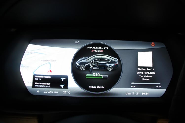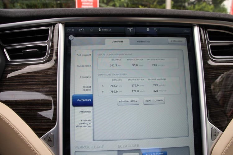 Une conduite apaisée et sans contraintes, voilà comment nous pourrions définir ces quelques heures passées au volant de la Model S. Il faut dire que l’ordinateur de bord nous met de suite à l’aise, calculant le trajet et estimant l’autonomie restante à l’arrivée. Ainsi, si on a souvent tendance à avoir le pied léger sur l’accélérateur et à modérer sa vitesse sur une voiture électrique traditionnelle, la Tesla Model S permet d’aborder une conduite décomplexée, ses 700 chevaux incitant clairement à une conduite plutôt sportive sans avoir l’œil vissé sur la jauge batterie.