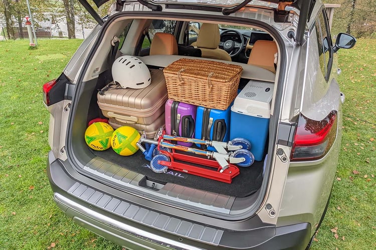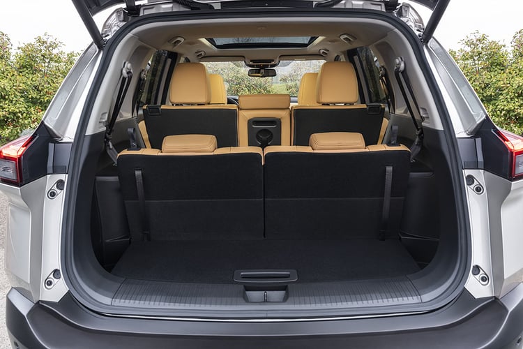 Avec une longueur de 4,68 m (pile entre un Peugeot 5008 et un Skoda Kodiaq), le Nissan X-Trail ne promet pas monts et merveilles aux deux dernières places, placées derrière la deuxième rangée coulissante sur 22 cm. Nissan en est conscient et prévient qu’il s’agit de sièges d’appoint qui suffiront à des personnes de 1,60 m, mais qu’ils ne seraient pas vraiment adaptés aux plus grands. À juste titre puisque les dossiers sont très courts. En version 5 places, le coffre cube de 575 l à 1 396 l. Avec la dernière rangée de sièges (une option à 900 €), le volume tombe à 485 l ou 1 298 l avec tout le plancher à plat. Quand les 7 dossiers sont relevés, le coffre tombe en dessous des 200 l.