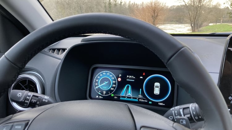 Dès les premiers tours de roue, nous apprécions la douceur de fonctionnement et la direction bien calibrée de ce nouveau Kona électrique.
