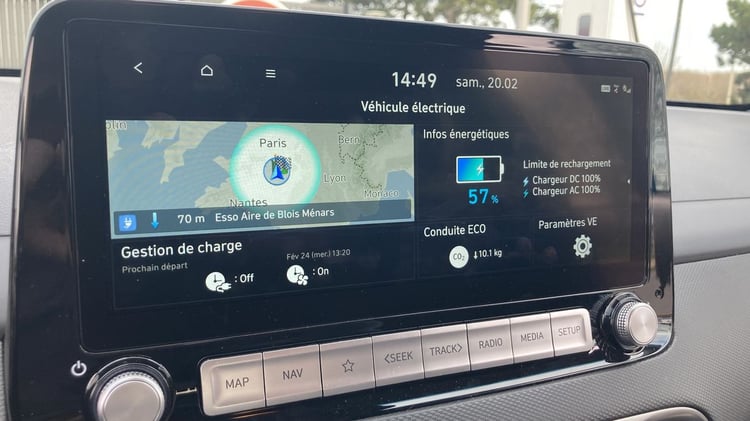 Le Kona reste l’une des voitures électriques les plus efficientes du marché. Sur les quelque 400 km d’un parcours associant urbain, petites routes et autoroutes, nous arrivons à une moyenne globale de 17,5 kWh/100 km. De quoi chiffrer l’autonomie réelle à environ 365 km.