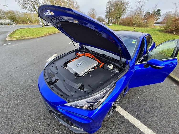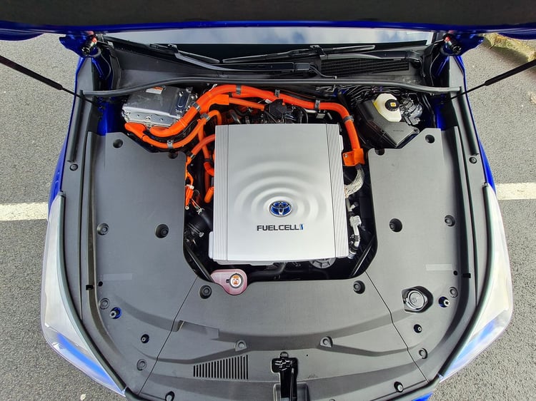 La pile a été déplacée du plancher vers le capot, éliminant les bruits mécaniques fréquemment constatés sur l’ancienne génération. L’espace gagné permet d’ajouter un troisième réservoir à la berline, portant sa capacité totale de stockage d’hydrogène à 5,6 kg sous 700 bars. Un petit kilogramme supplémentaire autorisant une meilleure autonomie, qui s’établit désormais à 650 km (+150 km).