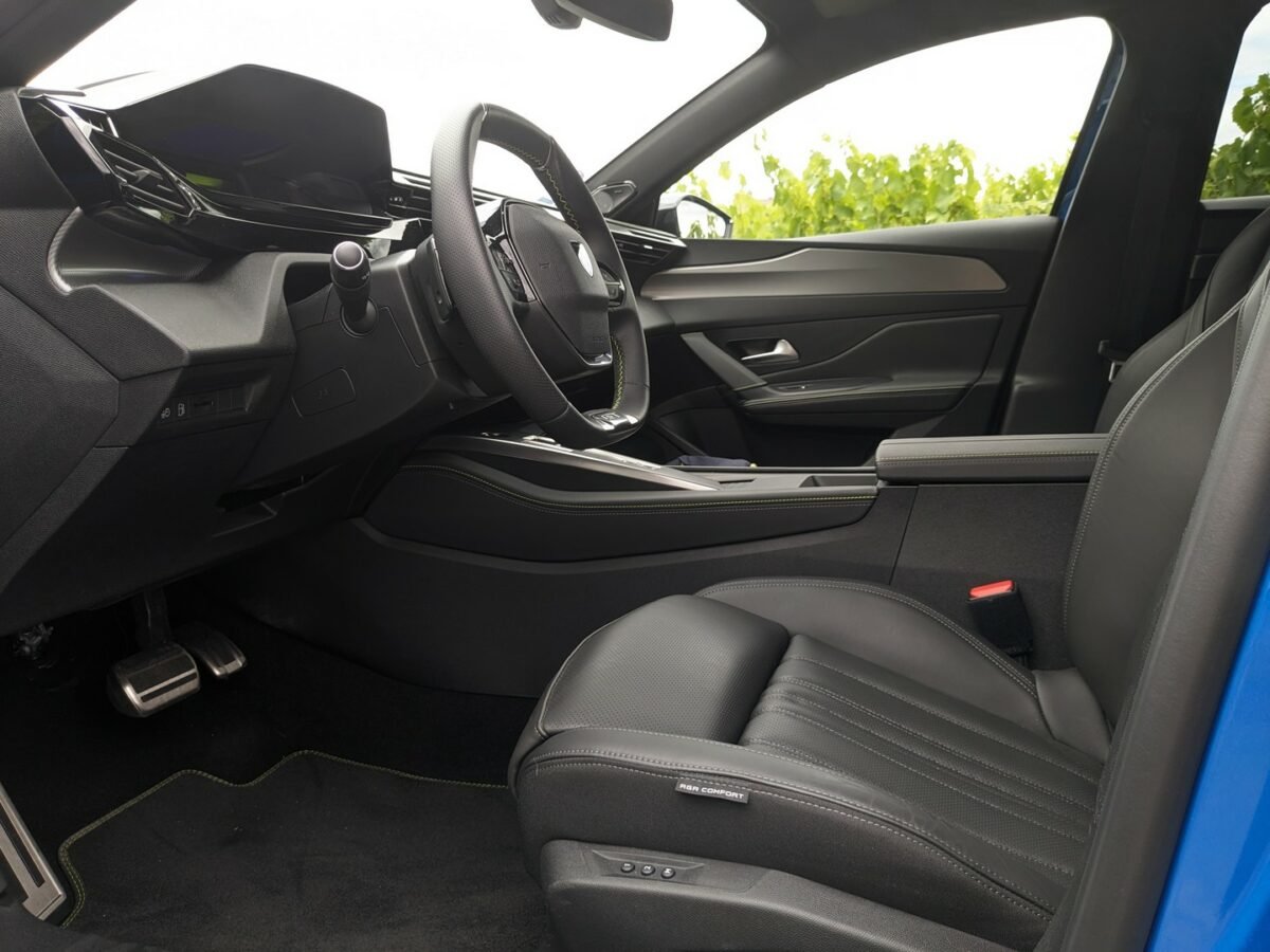 C’était déjà une des caractéristiques de la précédente 308, qui offrait un confort limité à l’arrière. Le volume du coffre est de 361 litres, ce qui reste correcte compte tenu des dimensions du modèle. La version sans hybridation offre un volume de 412 litres, et cela témoigne de la bonne intégration de la batterie.