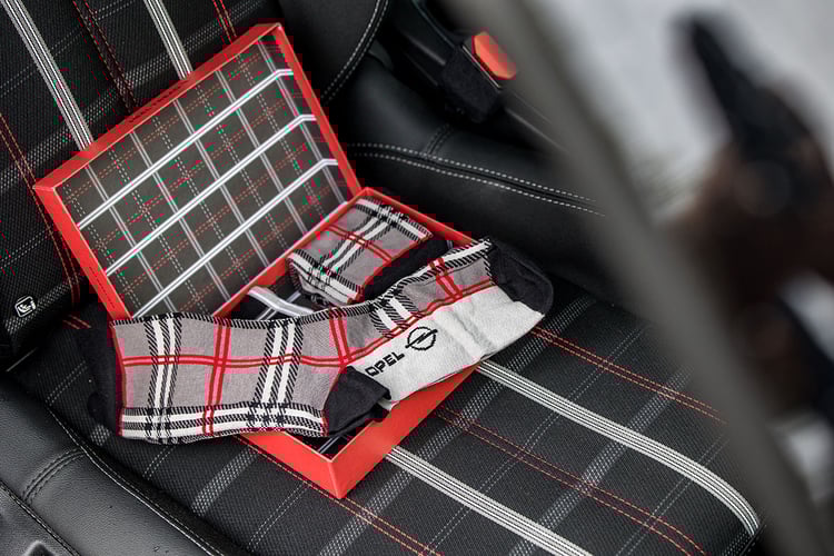 Ici, la citadine fait le plein d’équipements, si bien qu’il n’existe aucune option à cocher sur son configurateur en ligne, là où elle est exclusivement proposée à la vente. Affichée au prix de 37 600 €, cette version, limitée à 120 exemplaires seulement en France en version électrique, profite d’un prix spécial Opel Store et tombe à 35 100 €. Une bonne affaire ? C’est presque autant qu’une Peugeot e-208 Allure Pack, qui ne dispose pas de toutes les coquetteries stylistiques, ni du chargeur embarqué 11 kW. Et elle n’a pas non plus les deux paires de chaussettes offertes, comme aime le souligner Opel, qui reprennent les motifs des sièges, pour être le plus apprêté aux stations de recharge.