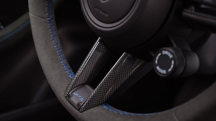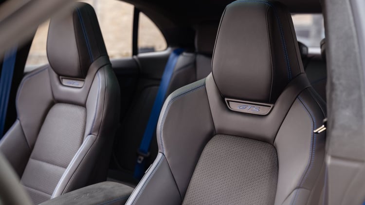 Les baquets sport électriques vous accueillent avec grâce, l’habitacle sent le sérieux, le volant sport GT typé 911 chauffant en Racetex glisse peut-être un peu trop entre vos doigts mais on parvient à se concocter une position correcte. Fatalement trop haute pour une sportive mais correcte. Les commandes sont assez claires, les écrans 12,6 et 10,9 pouces aussi.