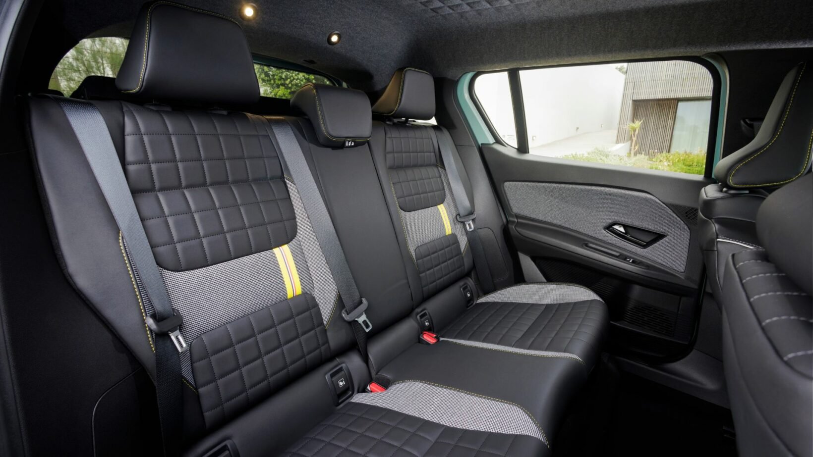 À l’avant, c’est déjà-vu, mais c’est bien. La planche de bord est identique à celle de la Renault 5. Seuls quelques habillages (comme le jeans de notre finition Techno) permettront de reconnaître la R4 sur les photos. Le poste s’organise autour de deux écrans de 10 pouces (l’instrumentation est de 7 pouces en entrée de gamme). Le combiné derrière le petit volant offre de beaux graphismes et une bonne hiérarchie entre les informations. La tablette opérée avec les services Google brille toujours par sa vitesse et sa facilité d’utilisation. Le planificateur met en route le préchauffage de la batterie (on peut aussi passer par l’application, mais pas par une commande sur l’écran). La réalisation est de bonne qualité. Les pièces effet piano subsistent au nom de l’esthétique, mais elles ont l’heur de ne pas se trouver dans des zones trop exposées. Près des genoux, c’est dur mais robuste. Les rangements, notamment les bacs de portes, sont chiches.