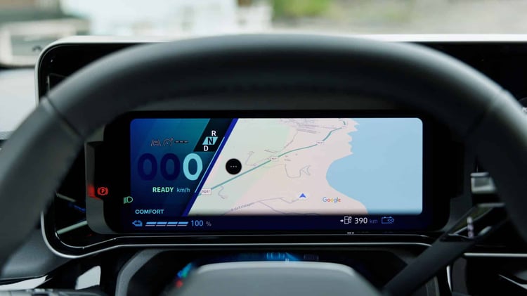 Le capteur monté à l’avant du véhicule se trompe un peu trop sur la vitesse maximale autorisée. Il nous a semblé sur les routes portugaises que la caméra avait ainsi un peu de mal à « lire » les panneaux de sortie d’agglomération, affichant toujours 50 km/h alors que l’on avait atteint la rase campagne. On verra si la R4 sera en mesure de mieux distinguer nos panneaux communaux rectangulaires à liseré rouge…