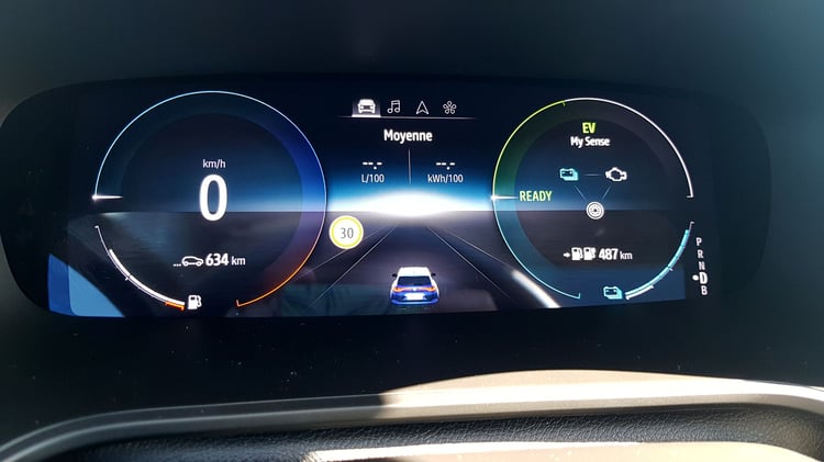 Le mode « My Sense » que nous utilisons privilégie un roulage entièrement électrique lorsque le niveau de batterie est élevé. En effet, le moteur essence ne s’est activé que brièvement pendant quelques secondes sur la première vingtaine de kilomètres parcourus sur routes départementales. Une configuration agréable, qui a ses limites si l’on sollicite un peu trop la pédale d’accélérateur.