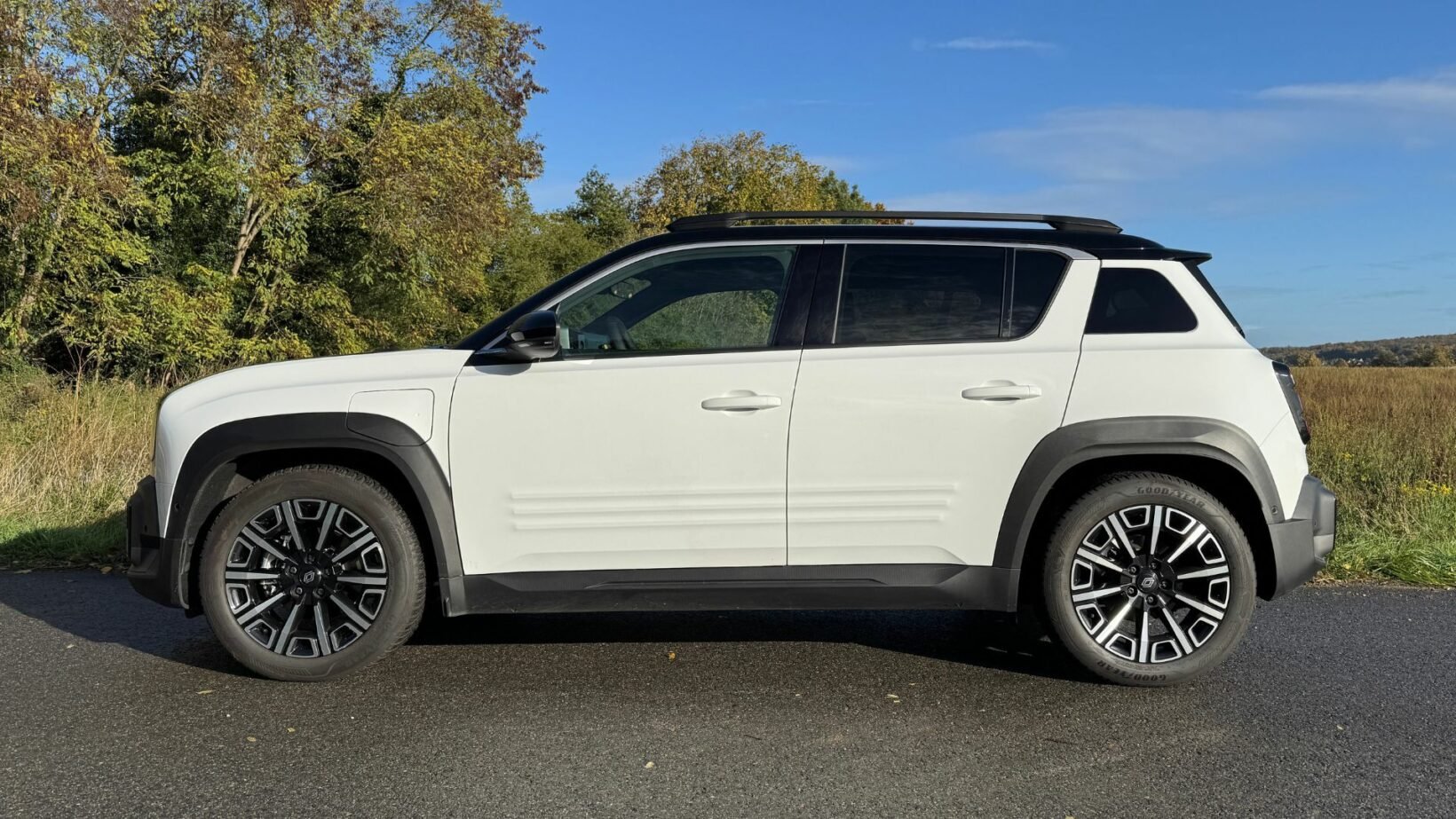 Notre modèle d’essai en finition Iconic se pare d’une peinture bicolore à 200 € ainsi que d’un capot noir réclamant 200 € de plus. L’équipement de série comprend des vitres arrière teintées, des barres de toit et des rétroviseurs rabattables électriquement et de sublimes jantes en alliage diamantées chaussées de pneus M+S (toutes saisons) en 195/60 R18.