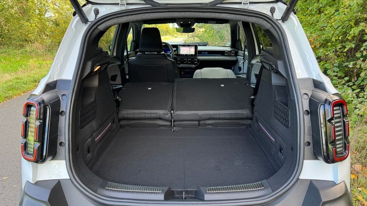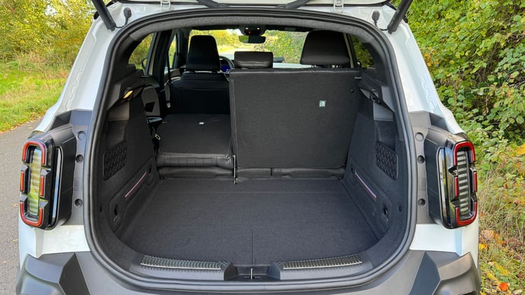 Une fois la banquette rabattue (2/3 1/3), le volume s’étend jusqu’à 1 149 dm³. L’accès n’est pas immense et la largeur limitée, mais le seuil remarquablement bas (607 mm) facilite le chargement d’objets lourds et le siège avant rabattable libère jusqu’à 2,20 mètres de longueur. Parfait pour transporter une grande planche de surf ou un meuble en kit.
