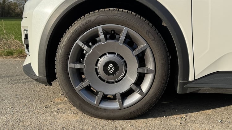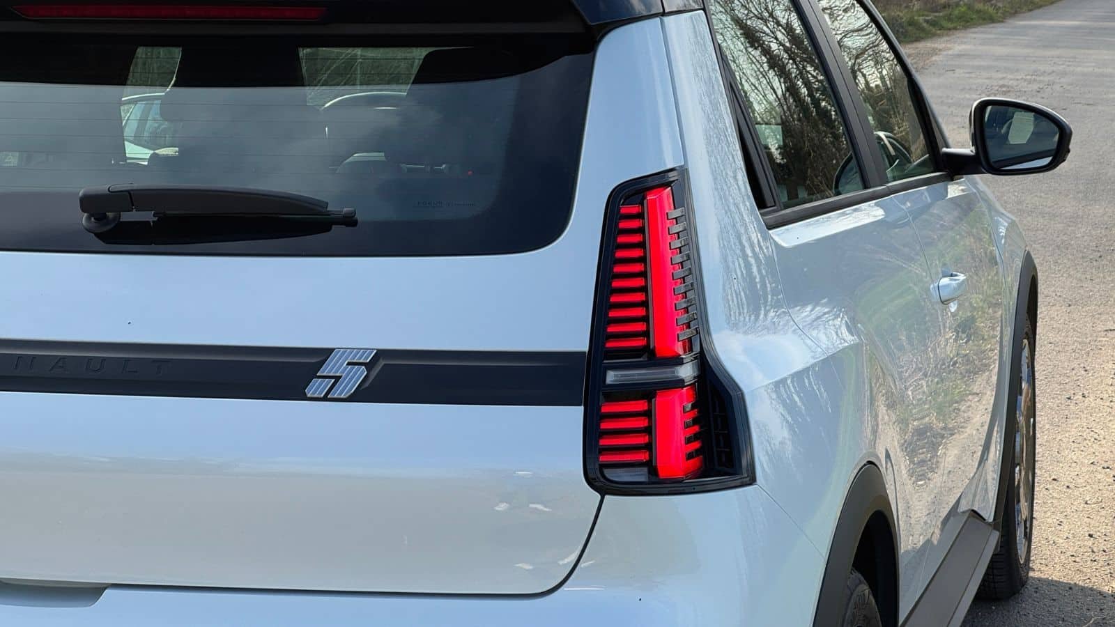Dans sa version intermédiaire Évolution, la nouvelle Renault R5 électrique fait toujours autant tourner les têtes. Ses grandes roues de 18 pouces se parent d’enjoliveurs assez flatteurs et peuvent se chausser de pneus toutes saisons (200 € en option). Les feux sont entièrement à LED, avec des clignotants et des feux de jour façon antibrouillards de rallye carrés.