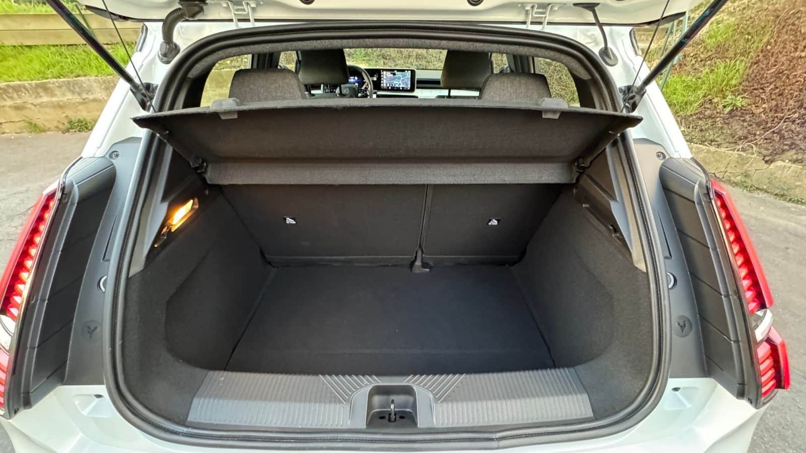 Avec un volume de 277 litres (959 litres avec les sièges rabattus), le coffre est correct pour une voiture citadine, mais peu accessible en raison d’un accès étroit et d’une largeur comptée. Le double-fond assez profond permet de ranger les câbles de recharge, mais la capacité d’emport reste limitée et il n’y a pas de rangement sous le capot avant.