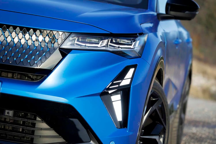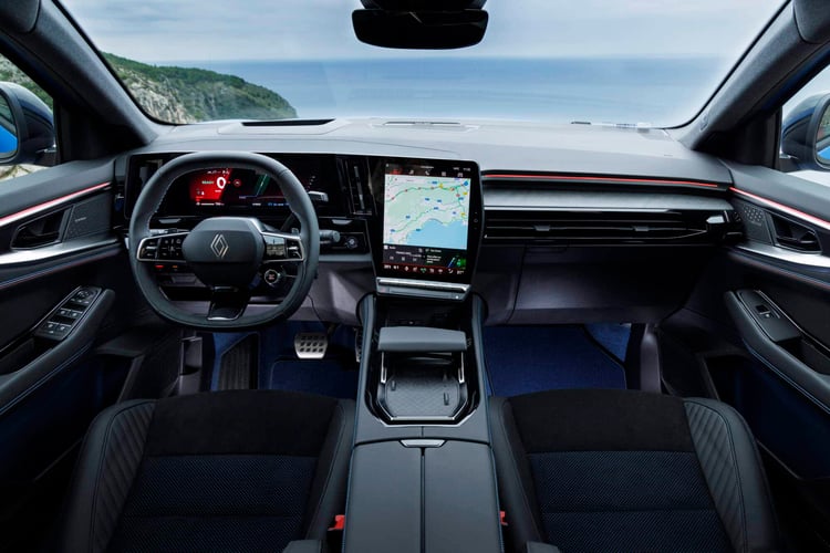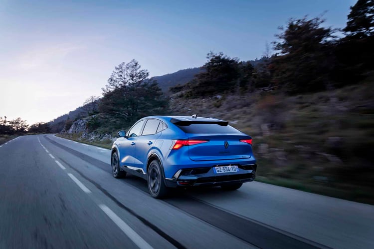 Voilà qui appartient donc au passé avec cette déclinaison, dont la chaîne de traction bien plus réactive et d’une puissance cumulée de 300 ch (250 ch en mode Confort, 185 ch en mode Eco) permet de profiter du châssis réglé aux petits oignons par les équipes d’Alpine : ressorts plus raides, barres antiroulis plus épaisses, butées de choc spécifiques, direction et calibrage du 4Control à quatre roues directrice revus, amortissement pilotée avec lecture de la route par caméra, … Le Renault Rafale e-Tech 4×4 vise le haut du panier en la matière.
