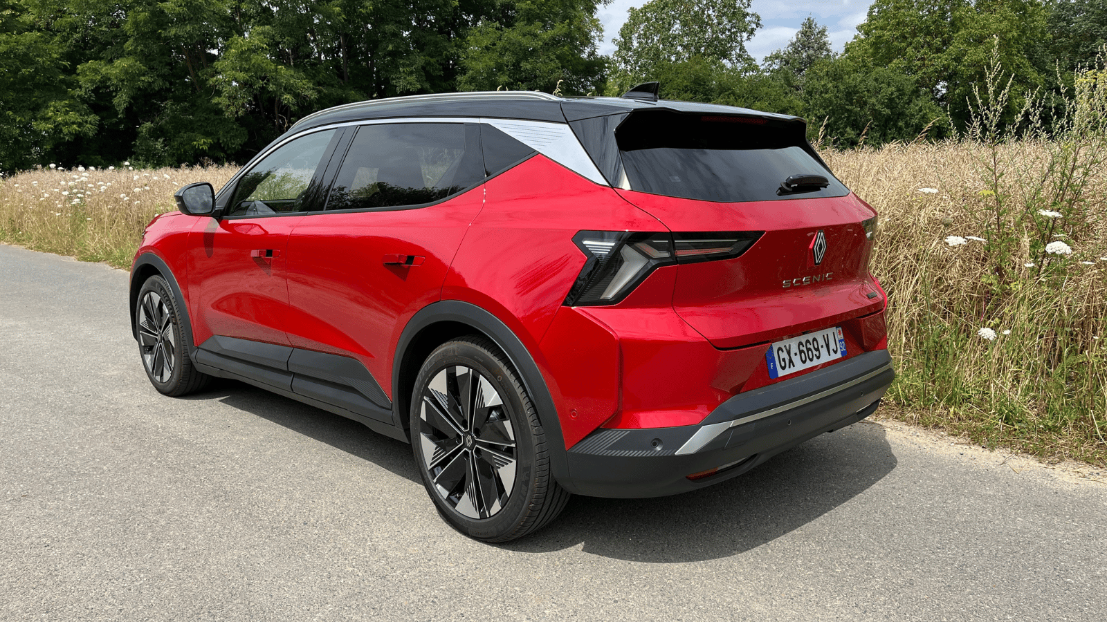 Essai – Renault Scenic électrique : le plus grand concurrent du Tesla Model Y est françaisSur la route, ce Renault Scenic de 170 ch offre assez d’allant. Les accélérations sur le 0-100 km/h sont certes moins vives que sur le modèle de 218 ch (8,6 s contre 7,9 s), mais demeurent suffisantes et meilleures que celles d’une Renault Mégane de 130 ch (10,5 s). Le couple de 280 Nm suffit d’ailleurs à déclencher rapidement l’antipatinage sur les roues avant motrices. Plus stable qu’agile, le Renault Scenic tend à élargir assez vite sa trajectoire en virage serré. La direction ne manque pas de précision, mais manque un peu de progressivité dans l’effort de braquage et transmet peu de remontée d’information. Bref, l’agrément de conduite et le dynamisme restent en net retrait face à un Tesla Model Y (en propulsion comme en quatre roues motrices). Cela dit, le Scenic freine bien et peut compter une fois de plus sur des suspensions parfaitement calibrées qui semblent encore plus efficaces sur cette version de 60 kWh allégée de 171 kg par rapport à la version 87 kWh.