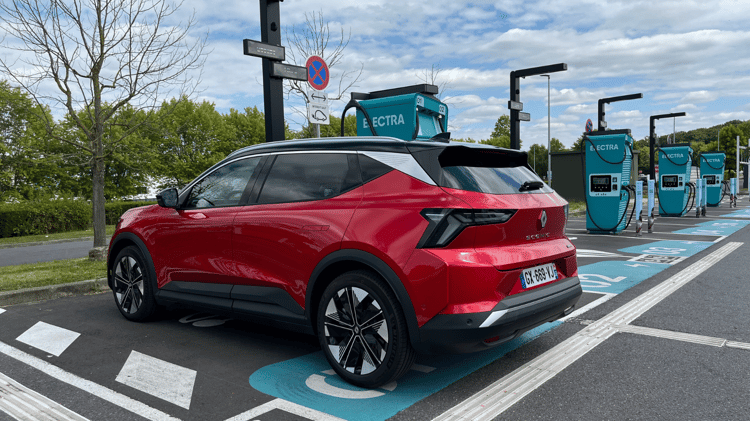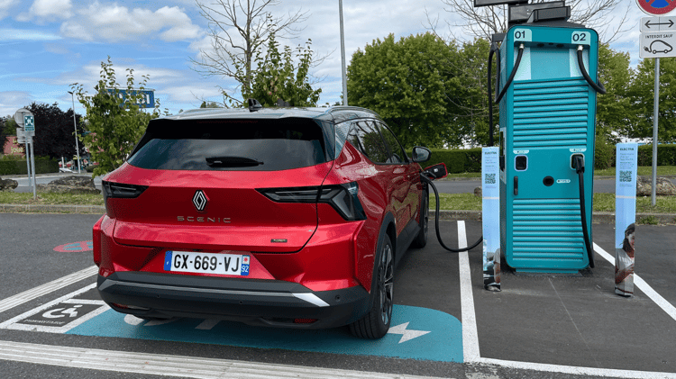 Essai – Peugeot e-3008 : peut-il réussir face aux références du SUV électrique ?Côté consommation, nous avons enregistré 21,7 kWh/100 km à 130 km/h et 22,8 kWh/100 à 150 km/h (sur autobahn illimitée évidemment !). Il sera toutefois possible de naviguer autour de 17 kWh/100 km en usage urbain, ce qui autorise un rayon d’action variant de 280 à 360 km. Doté d’un système de préconditionnement de la batterie, le Scenic accepte 130 kW de puissance de charge maxi en courant continu (DC) pour passer de 10 à 80 % en 33 min. Dans la moyenne, sans plus ! Sur du courant alternatif (AC), comptez 9 h 15 pour faire le plein avec le chargeur embarqué de série sur une Wallbox de 7,4 kW et 3 h 15 avec le chargeur de 22 kW facturé 2000 €.