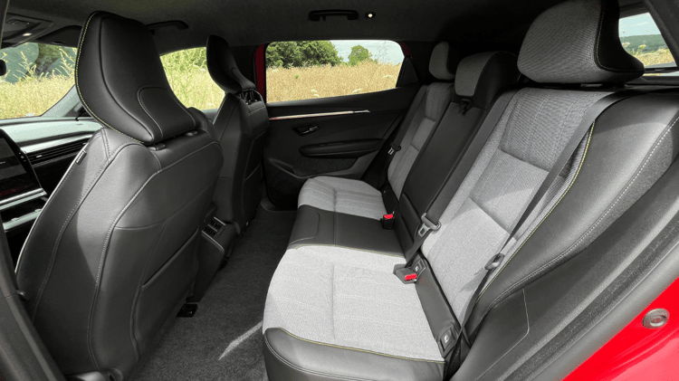 À bord, le Pack Techno ajoute un volant chauffant avec des palettes faisant varier la force du freinage régénératif et un bouton Multisense pour choisir ses modes de conduite. Ce pack comprend par ailleurs un plus grand écran multimédia de 12 pouces, avec un planificateur reposant sur Google Maps et un chargeur à induction. Ce dernier n’est cependant pas très efficace et chauffe davantage le téléphone qu’il ne le recharge. Si la présence de nombreux commodos et boutons autour du volant peut dérouter au premier abord, l’ergonomie des commandes est plus intuitive et naturelle que dans une Tesla où tout est regroupé sur le même écran. Les rangements nombreux et bien disposés facilitent aussi le quotidien.