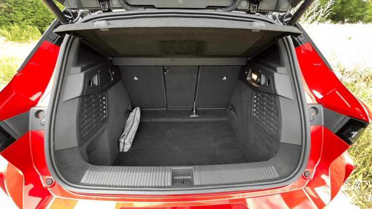 Extérieurement, rien ne change sur ce modèle de base qui conserve un style assez sportif avec des bas de caisse, un becquet et des optiques à LED effilés. Les jantes en alliage de 19 pouces figurent également dans la dotation de série. Notre version d’essai ajoute un coloris bi-ton Rouge Flamme avec toit noir (1400 €) et le pack Techno (2000 €) qui intègre les rétroviseurs rabattables électriquement, les vitres arrière teintées et des décorations de boucliers noir satin.