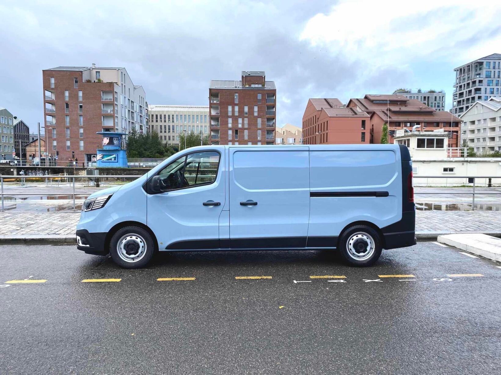 Sur la route, on apprécie le silence qui règne dans ce Trafic. Et ce n’est pas le cas de tous les utilitaires électriques. On sent que le sujet a été travaillé. C’est vrai à 50 km/h autant qu’à 110 km/h. Le couple disponible immédiatement contribue à un sentiment de fluidité très appréciable. Les routes abîmées des vignobles bordelais nous ont permis de tester les suspensions de l’utilitaire électrique. Verdict : ça tient le choc. On a ressenti un certain confort même en passant sur les nombreux nids de poule tout au long du parcours.