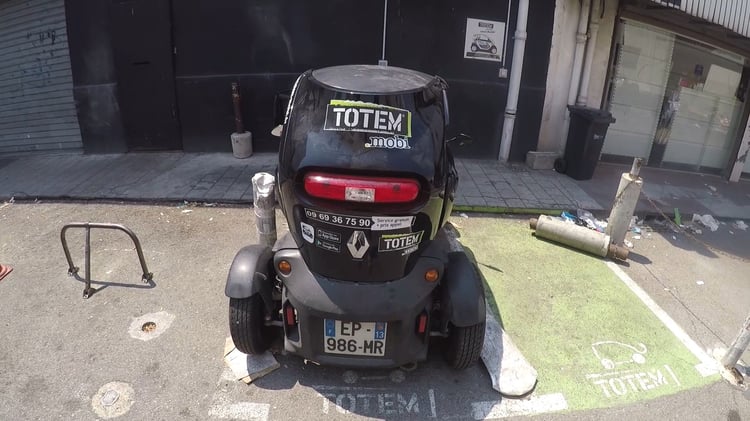 La location d’1h25 nous a été facturée environ 10 euros par la société d’autopartage, sous forme de « tokens » (un token équivalent de 1 à 2,7 euros selon la formule choisie). Un tarif raisonnable, d’autant que la recharge est gratuite. Un plein nous aurait coûté environ 0,90 euros en chargeant à domicile. On déplore cependant le mauvais état du véhicule emprunté. L’entretien est un réel défi pour Totem Mobi, qui répare comme elle peut les nombreux Twizy malmenés par les comportements inadaptés des utilisateurs, le vandalisme et les intempéries. Il est courant de croiser des quadricycles aux rétroviseurs arrachés, la batterie 12v vidée par les feux de détresse activés par des passants malveillants, utilisés comme cendriers ou poubelle ou les portières dégondées.
