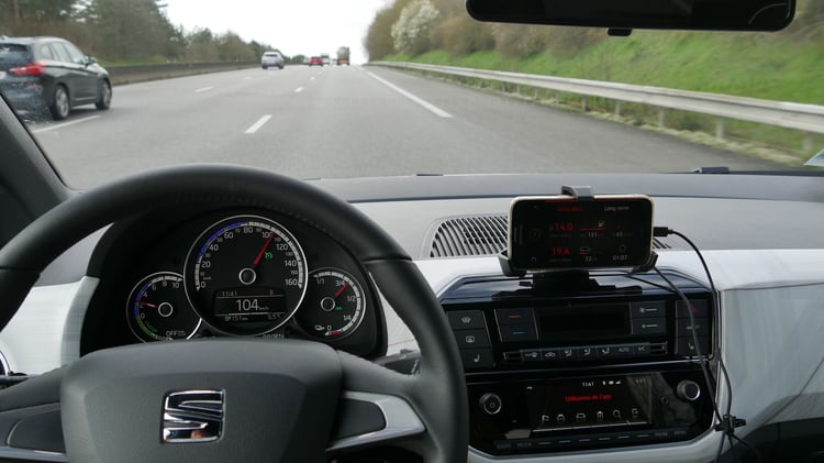 Le tableau de bord indique 221 km d’autonomie restante. Une estimation basée sur notre précédente étape à vitesse relativement faible. Prudents, nous prévoyons un prochain arrêt-recharge à 113 km en roulant à 110 km/h sur régulateur. C’est l’allure idéale pour la Seat Mii, alliant confort et autonomie. La voiture étant compacte et proche du sol, nous n’avons pas l’impression de nous traîner à cette vitesse. Pour les plus nerveux, la micro-citadine peut atteindre 135 km/h.