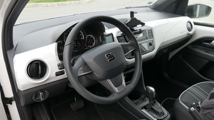 Très simpliste, il est composé de trois compteurs à aiguilles indiquant le niveau de puissance ou de régénération, la vitesse et un aperçu de la batterie restante. Sur le petit écran LCD intégré, on peut faire défiler l’odomètre, la consommation moyenne, la vitesse courante et la vitesse moyenne. L’heure, la position du sélecteur de vitesse et l’autonomie restante en kilomètres restent fixes. Il manque toutefois deux données pourtant cruciales : le niveau de batterie exprimé en pourcentage et la puissance de recharge instantanée. Un défaut que l’on retrouve sur de nombreux véhicules électriques. On se demande d’ailleurs pourquoi les constructeurs sont si réticents à afficher le pourcentage alors que la totalité des mobiles, tablettes, ordinateurs portables et autres objets à batterie relayent cette information. Elles ne sont même pas affichées sur l’application smartphone DriveMii fournie par Seat.