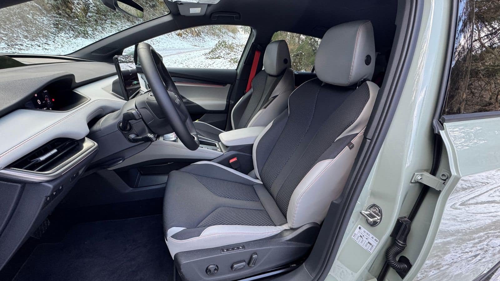 Sur autoroute, le Skoda Elroq se contente d’une vitesse maximale de 160 km/h (180 km/h sur la version 85). L’insonorisation est bien maîtrisée, avec des bruits d’air étouffés même à 130 km/h, malgré l’absence de vitrage latéral feuilleté. Les bruits de roulement sont également très contenus, même avec des jantes de 20 pouces et des pneus hiver de notre version d’essai très spéciale. En revanche, l’absence de Lane Assist+ et de régulateur actif sur la version City est un point faible. Seul un régulateur prédictif (mais pas actif) avec lecture des panneaux de vitesse figure dans la dotation de série sur la finition City.