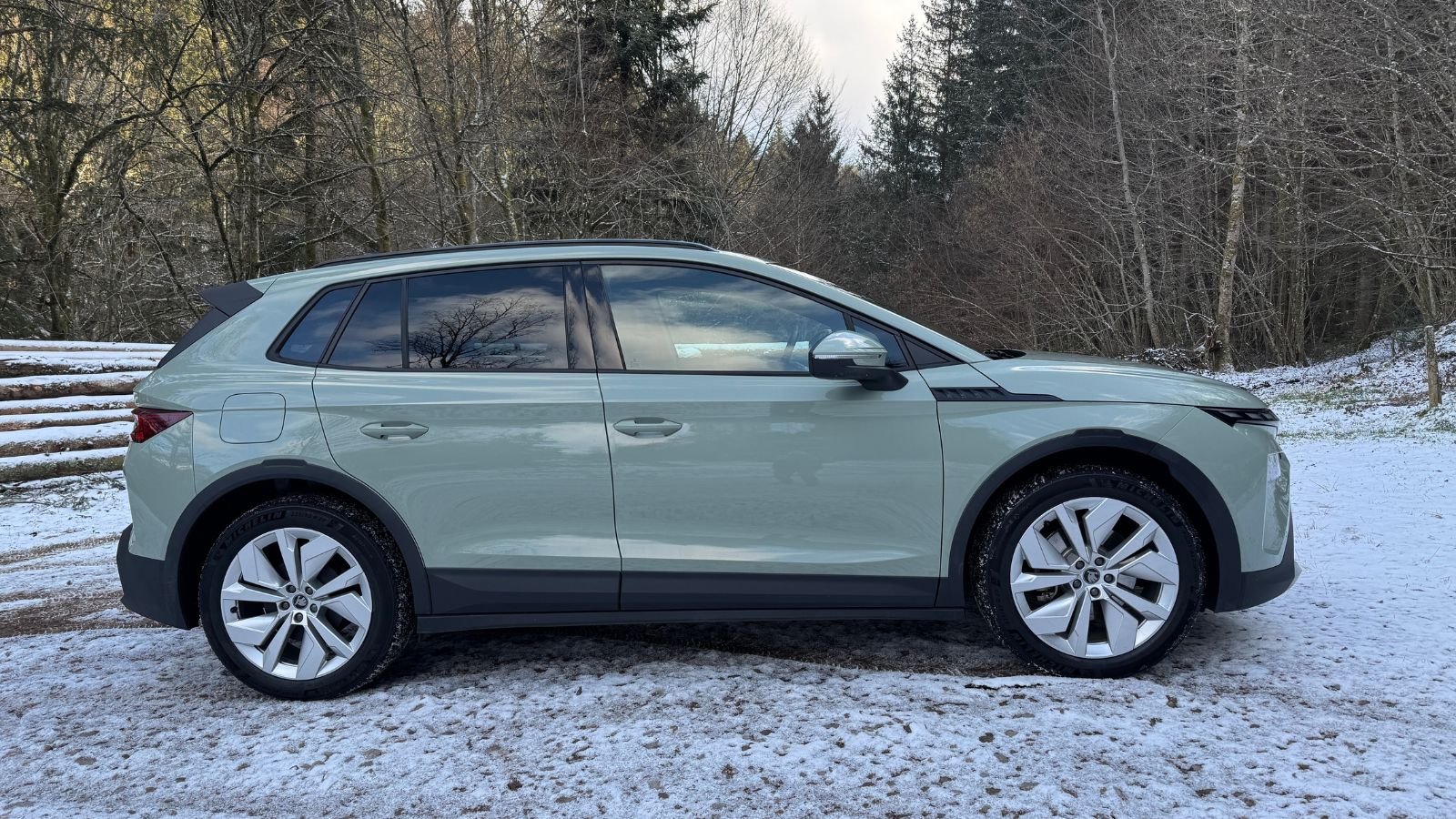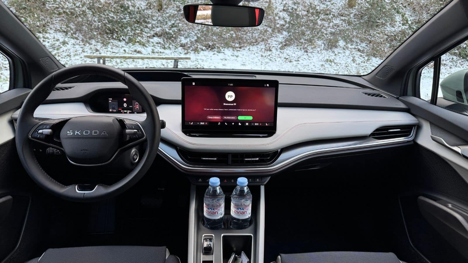 Avec une consommation WLTP mixte de 16,1 kWh/100 km (soit 322 km d’autonomie), le Skoda Elroq 50 fait légèrement mieux que le Renault Scénic 60 kWh (16,3 kWh/100 km). En conditions réelles, nous avons relevé 18,4 kWh sur un parcours varié par température fraiche (3°) sur route avec de la voie rapide à 110 km/h. Pas mal au regard du poids et de la présence de larges pneus d’hivers Tablez sur 21, voire 22 kWh/100 km à 130 km/h, ce qui équivaut à ce que propose le Renault Scénic 60.