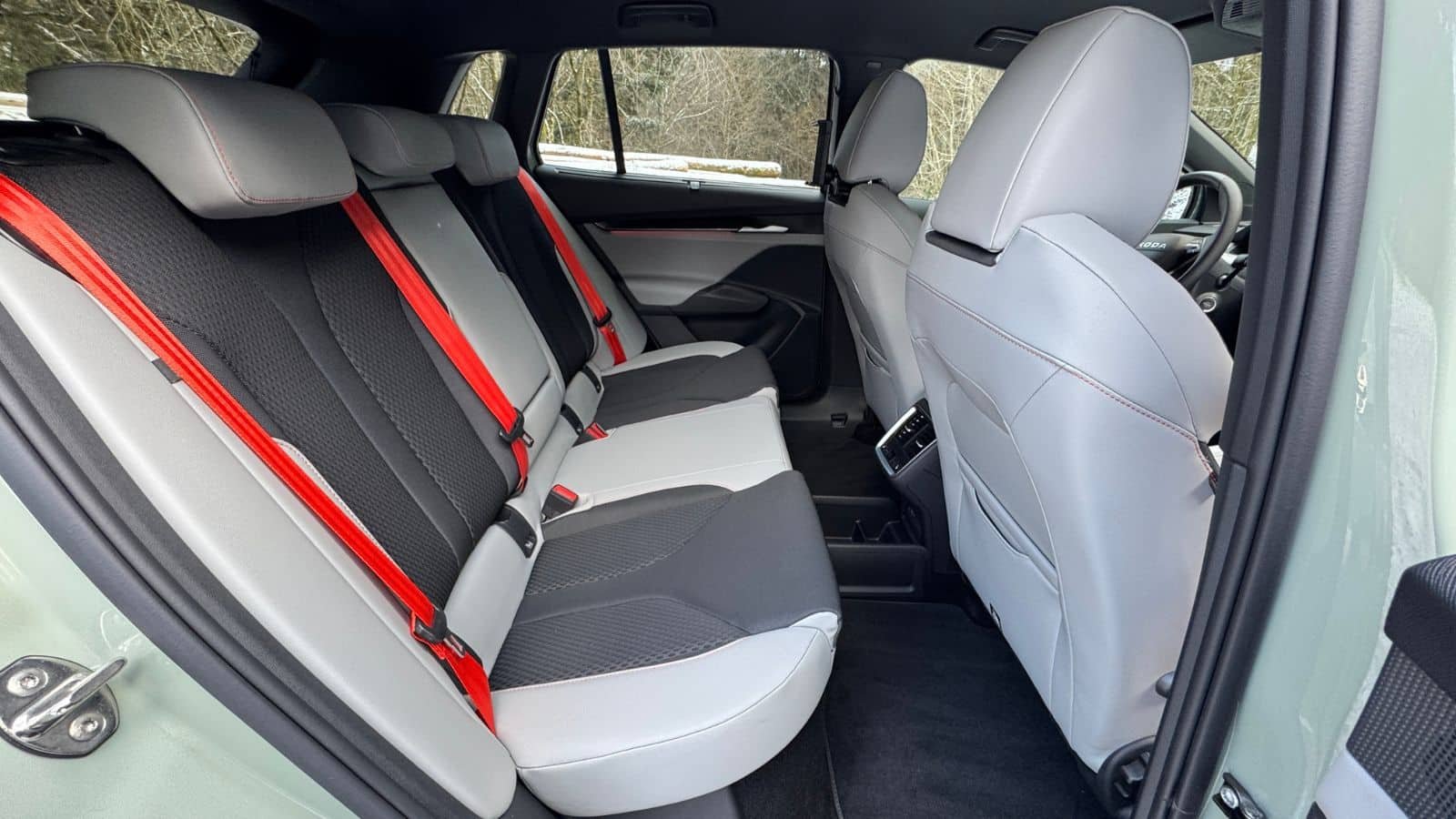 Grâce à un empattement de 2,77 m (1 cm de moins que le Scénic), le Skoda Elroq offre un espace arrière confortable. Deux adultes seront à leur aise et un troisième passager peut s’envisager, même si la place du milieu est plus étroite et ferme. Le bac de rangement amovible (en série sur la version City) au centre du plancher parfaitement plat ajoute une astuce appréciable. On regrettera toutefois l’absence de toit vitré.