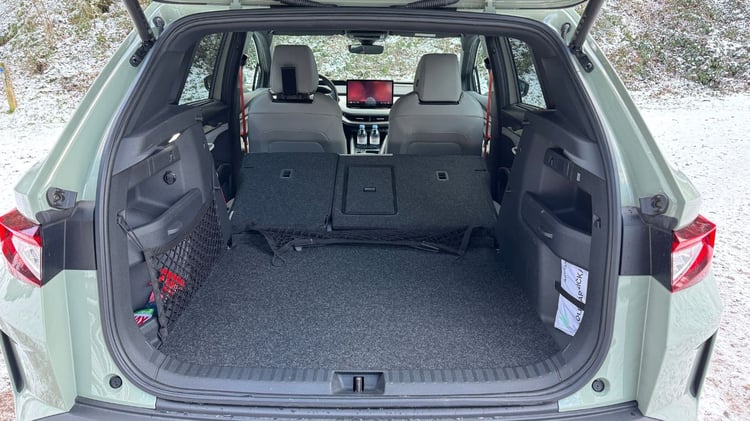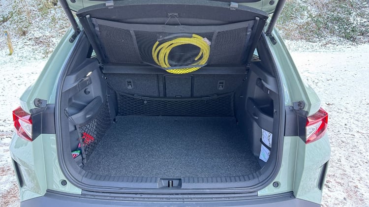 Skoda renonce à lancer une voiture électrique à moins de 20 000 €Avec un volume de coffre de 470 litres (et jusqu’à 1580 litres avec les sièges rabattus), le Skoda Elroq n’est pas aussi généreux que l’Enyaq (585 litres) mais surpasse le Renault Scénic (440/1449 litres). La banquette en 2/3 1/3 comprend une trappe à ski et la soute regorge de rangements pratiques, de crochets et d’accessoires bien pensés, comme le gratte-vitres intégré dans le hayon. Un double-fond compartimenté permet de ranger un câble de recharge faute de rangement sous le capot avant.