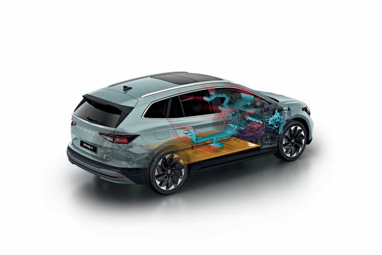 Essai – Nissan Ariya 87 kWh : les consommations, autonomies et performances mesuréesLe Skoda Enyaq iV repose sur la plateforme modulaire MEB et spécialement développée pour les véhicules électriques du groupe Volkswagen. L’empattement est assez similaire (6 mm plus court) à celui du Volkswagen ID.4, son proche cousin germain, et on y retrouve donc la même configuration mécanique.