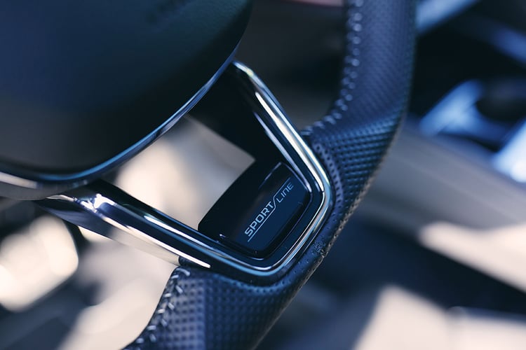 Sur les rares virages dans la campagne en périphérie de Prague, la transmission nous a semblé indéboulonnable, en canalisant efficacement les phénomènes de sous-virage, bien souvent naturels sur ce genre de SUV. Sur les mouvements latéraux, l’Enyaq fait bonne figure aussi par rapport à nos habitudes et ne perturbera pas les passagers, même dans cette finition Sportline : malgré des appuis plus rigoureux, le SUV s’autorise toujours un léger roulis afin de privilégier le confort à bord, mais sans atteindre le niveau d’un Kodiaq parfois paresseux, par exemple.