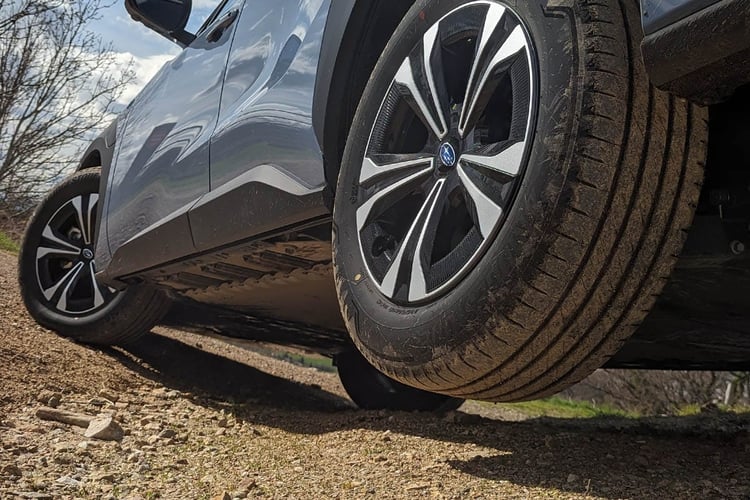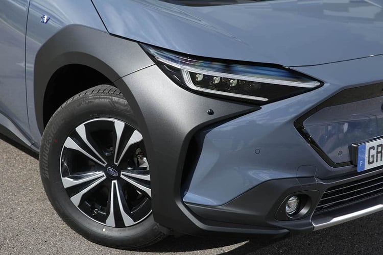 Si les deux machines électriques sont identiques et délivrent le même niveau de puissance maximale, celle installée à l’avant est toutefois privilégiée à l’accélération. Un avantage lorsque les conditions sont difficiles, mais cette répartition rend le comportement un peu sous-vireur sur le sec, d’autant plus ardu à canaliser avec la direction à peine trop démultipliée et le train avant un peu lourd. Un typage très Subaru, le Toyota bZ4X se montrant de son côté plus urbain sur ce point. Pour le reste, le comportement apparaît sécurisant et l’agrément est au rendez-vous. Il n’y a guère qu’à basse vitesse que la suspension peut retransmettre les irrégularités de la route dans le dos des passagers, mais cela reste très acceptable.