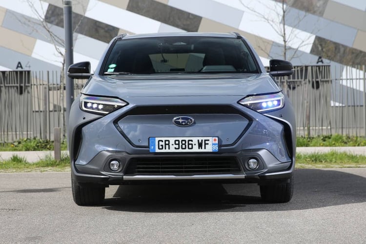 Essai – Nissan Ariya 87 kWh : les consommations, autonomies et performances mesuréesSi la base est commune (plateforme e-TNGA), le Subaru Solterra cultive sa singularité avec, tout d’abord, un faciès spécifique composé d’une calandre pleine, d’un regard plus affirmé et d’un bouclier intégrant des longues portées. Si le Toyota est plus urbain, le Solterra montre davantage ses ambitions aventurières. Et cela se confirme aussi avec l’unique transmission intégrale proposée dans la gamme. Un choix cohérent puisque c’est à la firme d’Ōta-shi, fidèle à la transmission S-AWD, que l’on doit la configuration 4×4 sur cette base technique.