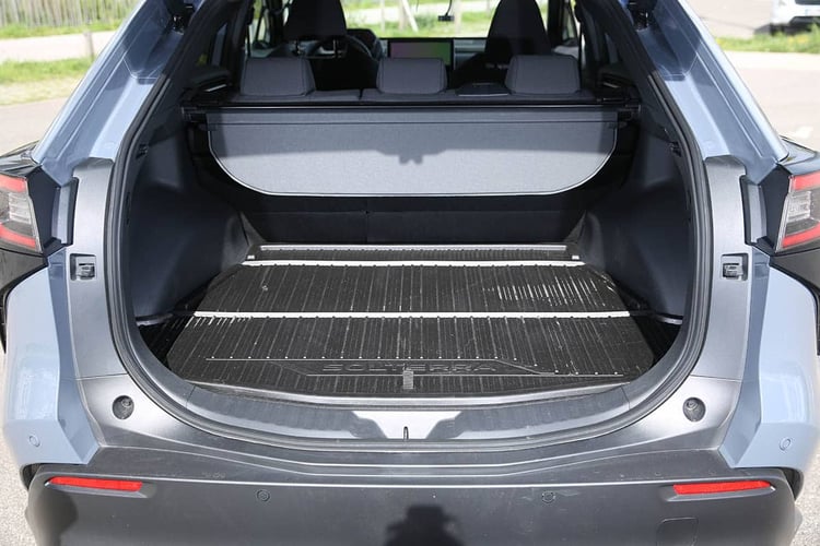 Comme bien d’autres voitures originaires du Japon, le Solterra n’a que faire de la poussière de fée et se concentre donc sur l’essentiel, ici le confort. Une fois le mode d’emploi assimilé, l’ergonomie apparaît correcte et l’équipement complet est utile au quotidien. Bien insonorisé et doté de sièges confortables, il permet d’enchaîner les kilomètres facilement. Les passagers arrière disposent quant à eux d’un rayon aux genoux très généreux et d’une large banquette.