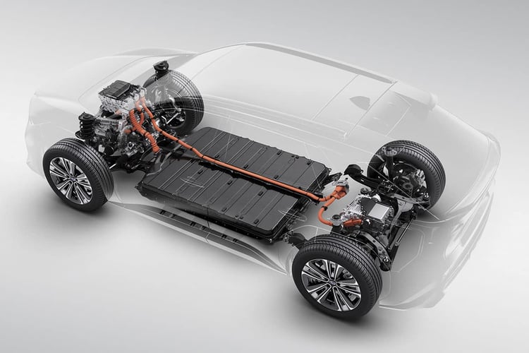 Sans surprise, cette transmission est assurée par une paire de machines électriques, une sur chaque train roulant. Cependant, quand les concurrents font le choix d’unités différentes, avec parfois une machine asynchrone afin de réduire les consommations, le Subaru Solterra embarque deux blocs parfaitement identiques, pour un total de 218 ch pour 337 Nm de couple. À noter que le différentiel est au centre de l’axe et que les cardans ont une longueur égale des deux côtés.
