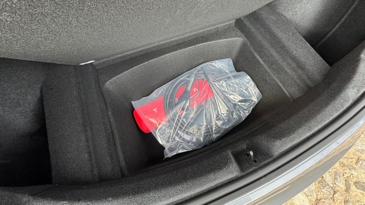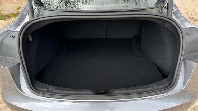 Pour rappel, l’empreinte au sol de la Tesla Model 3 est de 4,72 x 1,85 m, pour une hauteur de 1,44 m. À l’arrière, les passagers sont très bien logés avec un plancher plat, une excellente habitabilité et un petit écran numérique qui leur est dédié. Les bagages peuvent de répartir entre le frunk de 88 litres et le coffre de 594 l à l’arrière avec double-fond pour loger bien plus que les câbles de recharge.