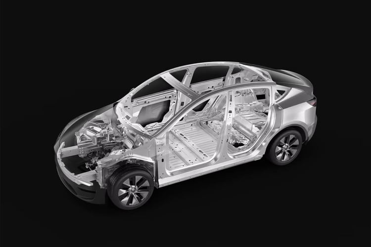 Le Tesla Model Y reprend donc la plateforme de la Model 3. Près de 75 % des pièces sont partagées entre les deux véhicules, notamment au niveau des parties techniques (moteurs, batterie, châssis…), mais aussi à l’intérieur. À l’extérieur, les choses évoluent un peu plus, et le profil de madeleine devient un peu plus marqué.