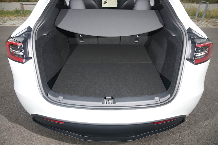 À bord, pas de changement ou presque, exception faite d’un pédalier en aluminium. On retrouve l’ambiance intérieure habituelle dans cette Model 3 taille XXL. Produite à Berlin, cette version ne présente pas de défauts de finition, très souvent pointés du doigt sur les Tesla : les ajustements sont satisfaisants et aucun bruit parasite ne se fait entendre. Nouveauté : la Performance embarque la plage arrière dans le coffre. Utile pour cacher les affaires, mais peu pratique à l’usage. Elle est un véritable casse-tête à enlever de son logement et libère assez mal l’accès au fond du coffre gigantesque.