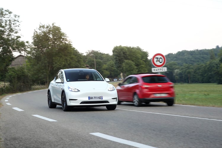 Lorsque le mode d’emploi du système One Pedal est assimilé, le Model Y peut raser le sol en matière de consommation sur une route nationale on ne peut plus favorable. Certes, poser le pied sur le point d’équilibre de la pédale d’accélérateur pour passer en roue libre fatigue la cheville, mais les résultats sont là.